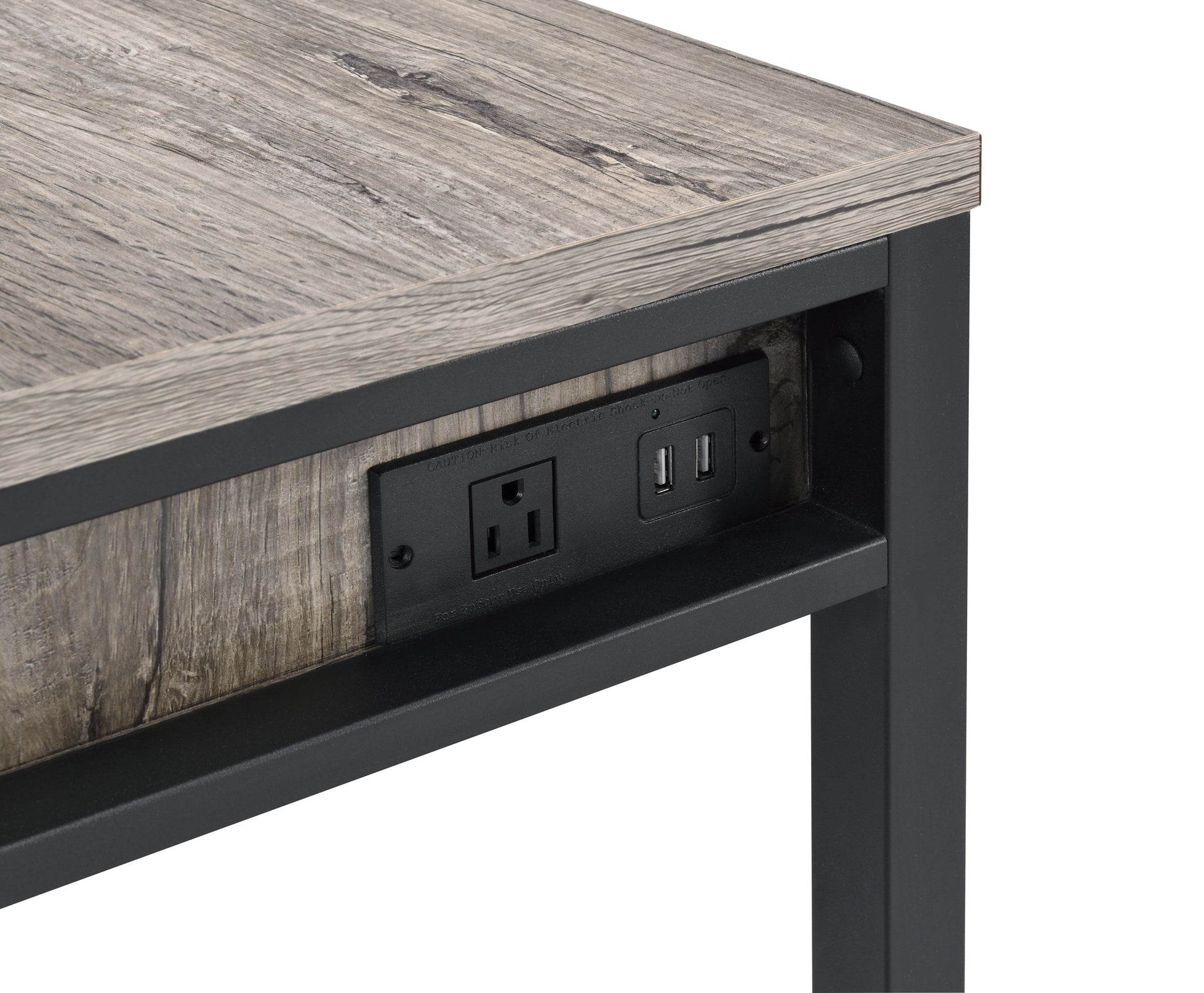 Disho Light Weathered Oak & Black Finish Writing Desk W Usb Oak Synthetic Wood