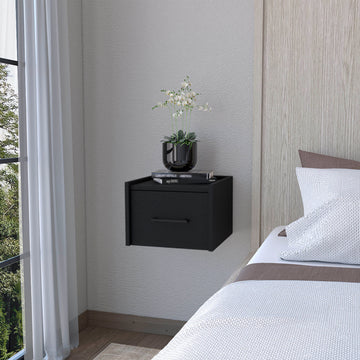 Elfrida Wall Mounted Nightstand, Sleek Single Drawer Design With Spacious Top Shelf Black 1 Drawer Floating Contemporary Melamine Engineered Wood