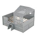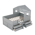 Full Size House Low Loft Bed With Four Drawers,Gray Box Spring Not Required Gray Wood Pine