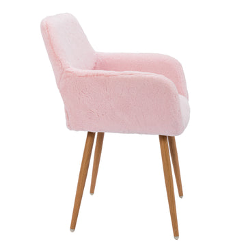 Hengming Dining Chairs With Faux Fur, Mid Century Side Chairs With Solid Painting Steel Leg For Dining Room Pink Faux Fur