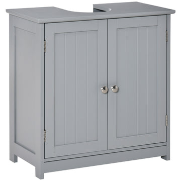 Kleankin Pedestal Sink Storage Cabinet, Vanity Base Cabinet, Under Sink Bathroom Cabinet With U Shape Cut Out And Adjustable Internal Shelf, Gray Gray Mdf
