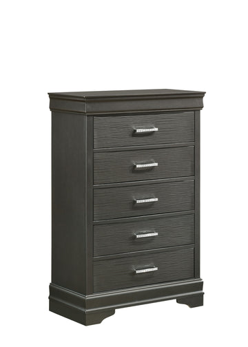 Modern Brooklyn 5 Drawers Chest Made With Wood In Gray Gray Bedroom Modern Acacia Upholstered Wood