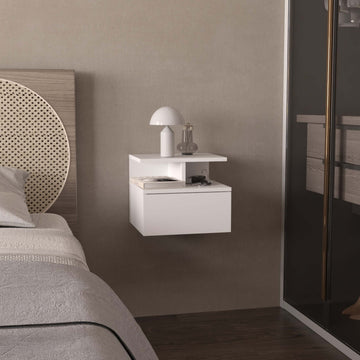 White 1 Drawer Floating Nightstand White White 1 Drawer Bedroom Floating Space Saving White Wood