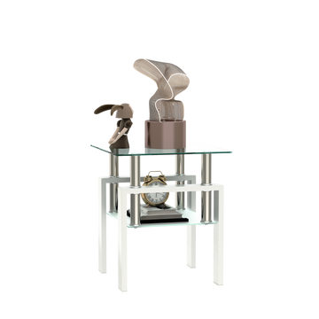 1 Piece Modern Tempered Glass Tea Table Coffee Table End Table, Square Table For Living Room, Transparent White White Tempered Glass