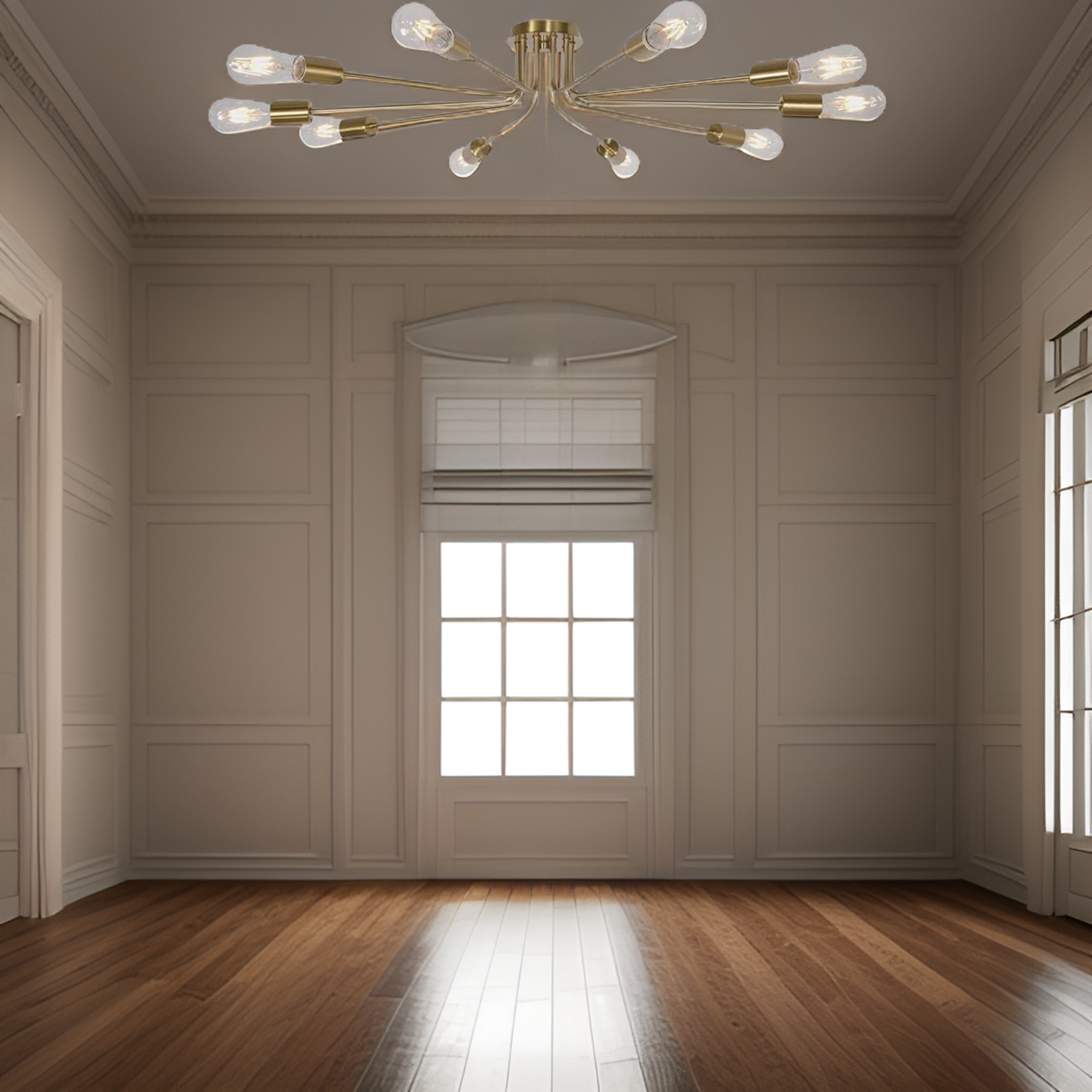 10 Light Sputnik Chandelier Brushed Gold Ceiling Light Semi Flush Mount Light Ceiling Lamp Brushed Gold Metal