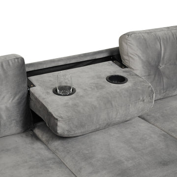 105" Modern Sectional Sofa With Storage Ottoman, L Shape Couch With 2 Pillows And Cup Holder,Sectional Sofa With Reversible Chaise For Living Room,Gray Gray Foam Velvet 6 Seat