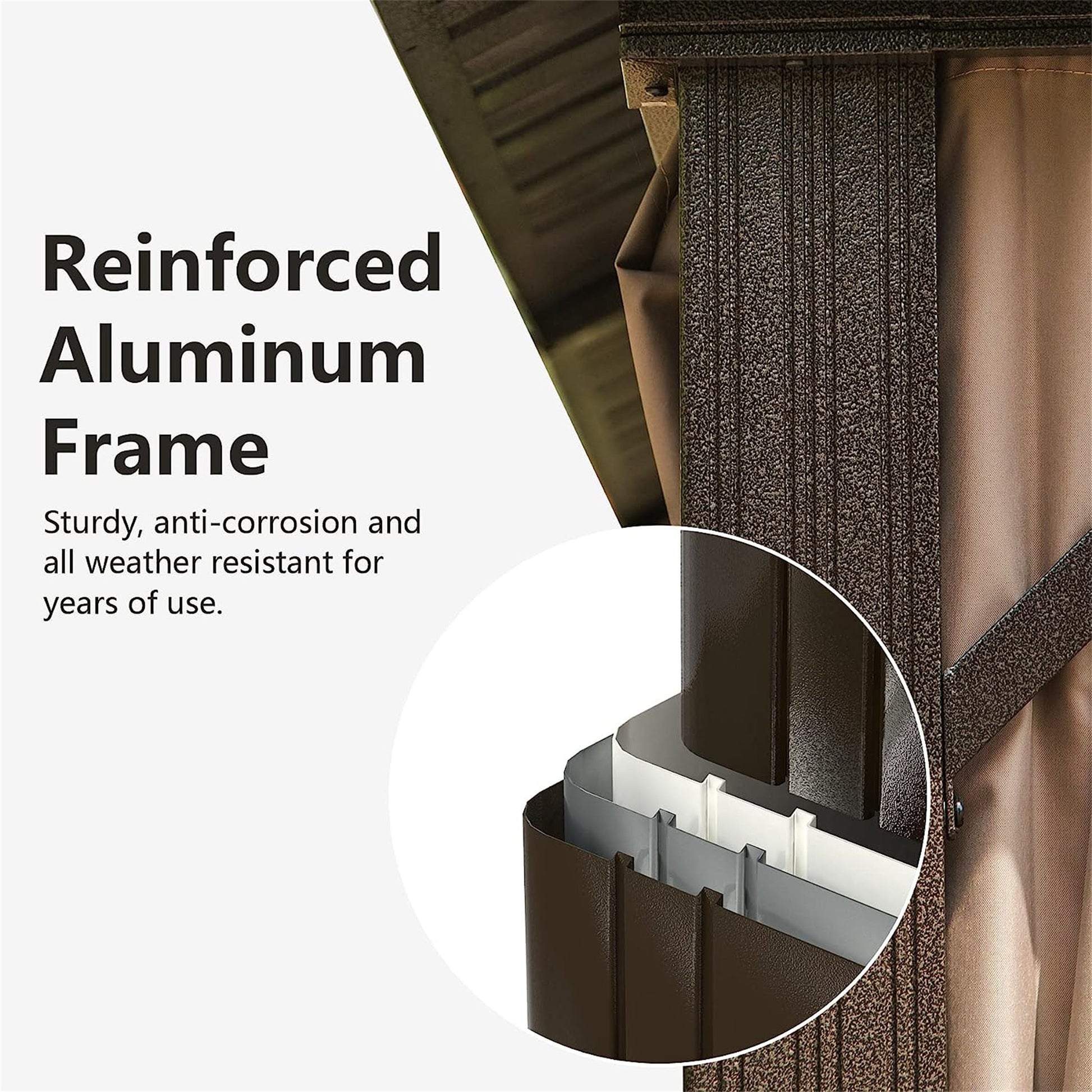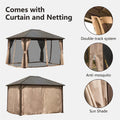 10'X12' Permanent Outdoor Galvanized Steel Roof Gazebo With Aluminum Frame, Pavilion Metal Gazebos With Netting & Curtains For Garden, Patios, Lawns, Parties Dark Brown Dark Brown Aluminium