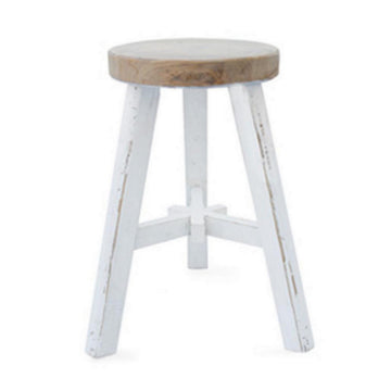 Name: 17 Inch Accent Stool, Round Brown Seat, Hand Painted White Tripod Legs