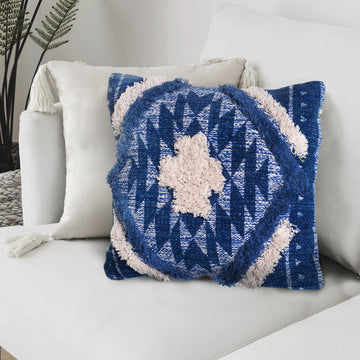 Name: 18 X 18 Shaggy Cotton Accent Throw Pillows, Southwest Aztec Pattern, Set of 2, Blue, White