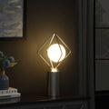 • Octahedron Brushed Silver Metal Cage measures 12"l x 12"w x 12"h. Brushed Silver Cylindrical Table Body measures 4.5"l x 4.5"w x 8.5"h.