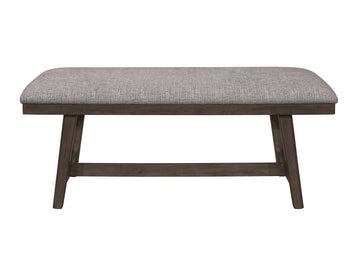 1Pc Dark Brown Finish Transitional Bench Upholstered Seat Gray Linen Look Fabric Wooden Furniture Brown Solid Wood