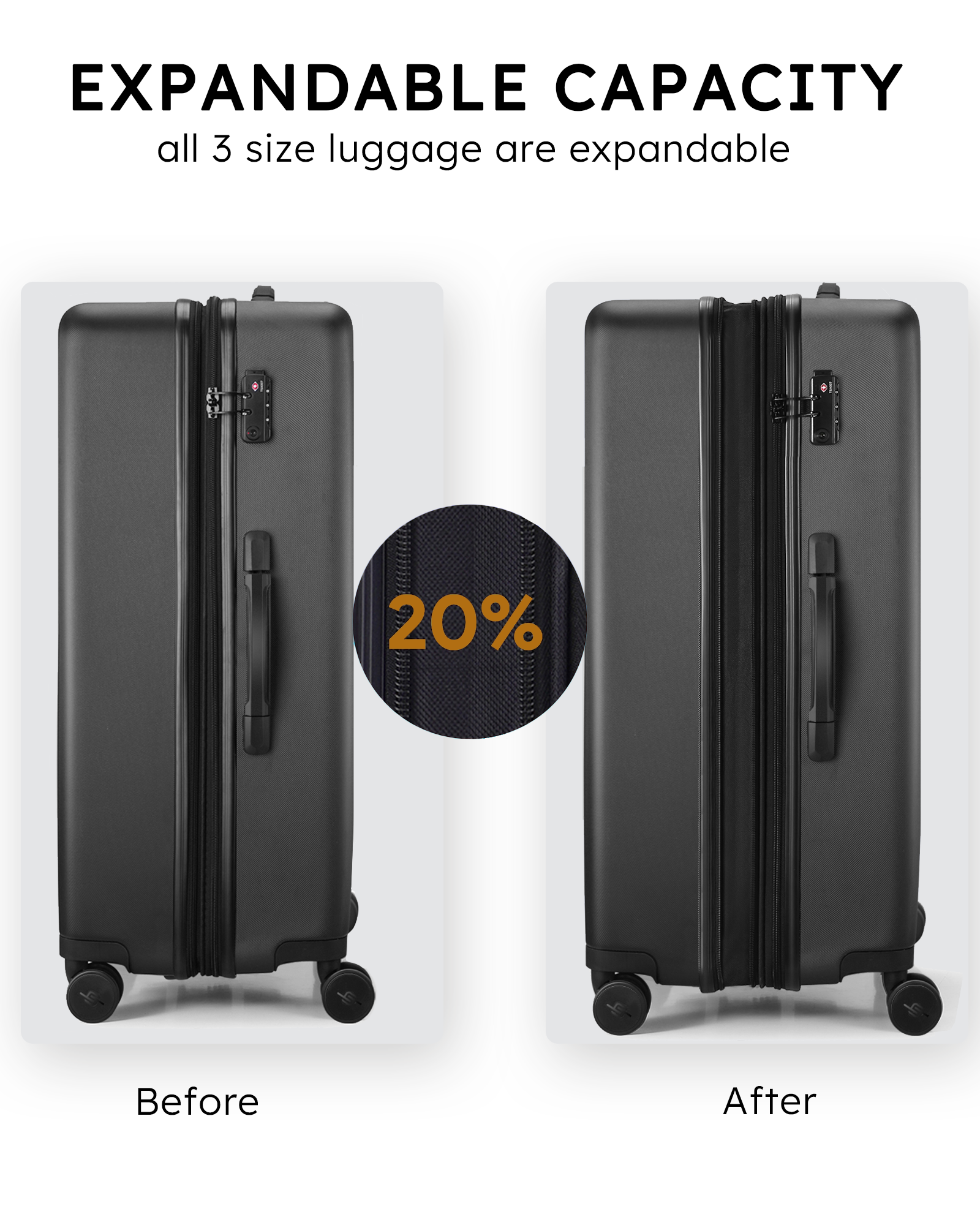 20 Inch Carry On Expandable Luggage With Tsa Lock Airline Approved Suitcase With Spinner Wheels Black Abs