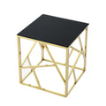20 Inch Modern Glass End Table With Geometric Metal Frame, Accent Table Nightstand Furniture Corner Table For Living Room,Home Office,Bedroom Gold Polished Golden Stainless Steel