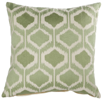 Name: 20 X 18 Inch Cotton Pillow with Fretwork Embroidery, Green and White