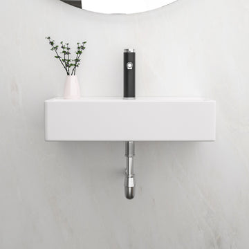 • Installation Type - Wall Mounted floating bathroom sink, more usable space . White wall mounted Sink Dimension: 21l" x 12"w x 5"h. Fit 1-3/4" Center Drain Hole.