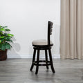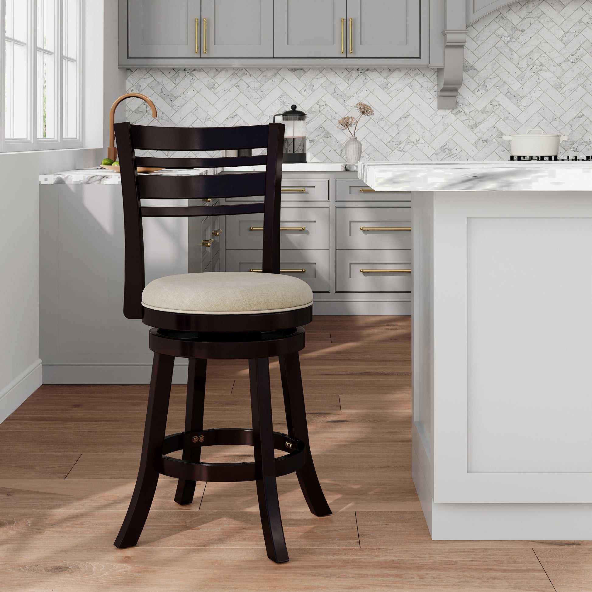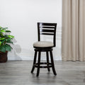 24" Counter Height 4-Slat Back Swivel Stool, Espresso, Beige Fabric