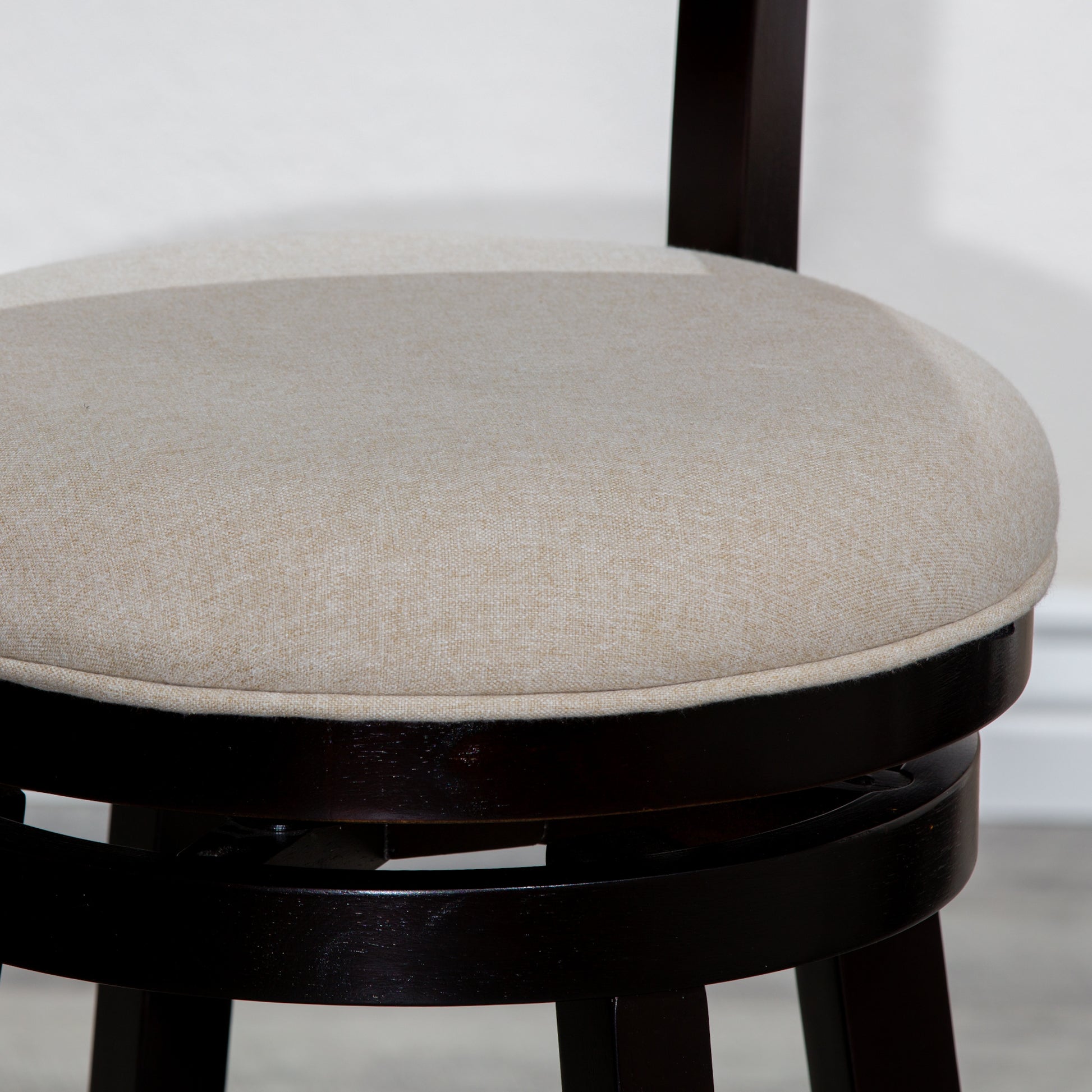 24" Counter Height Slat Back Swivel Stool, Espresso Finish, Beige Fabric Seat Espresso Fabric