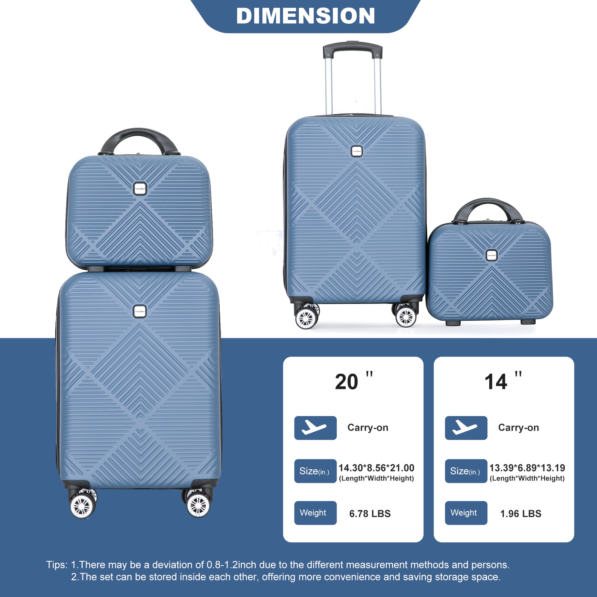 2Piece Luggage Sets Abs Lightweight Suitcasespinner Wheels, 20 14 Blue Blue Abs