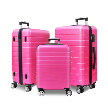 3 Piece Luggage Set Travel Lightweight Suitcases With Rolling Wheels,Tsa Lock & Abs Hard Shell ,Carry On Luggages For Business, Trip, 20 24 28 Rose Red Abs
