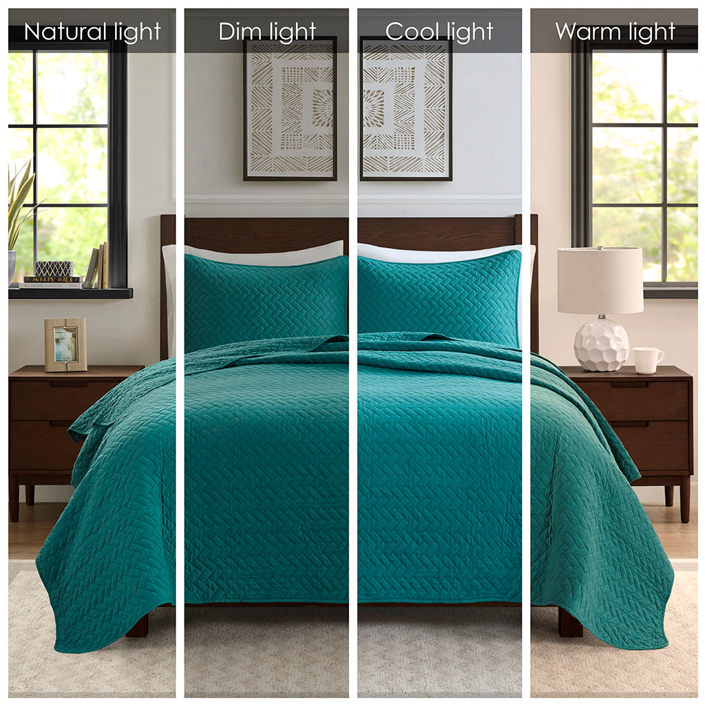 • Luxurious 3 piece quilt set in all over herringbone quilted pattern