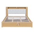 3 Pieces Bedroom Sets Queen Size Tufted Upholstered Platform Bed With Motion Activated Night Lights And Usb Charger, Modern Storage Nightstand And Dresser, Natural Queen Natural 3 Piece Set Wood