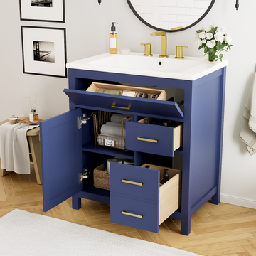 30 Inch Blue Bathroom Vanity With Ceramic Sink And Large Storage Ideal Choice For Small Bathrooms Blue Bathroom Solid Wood Mdf