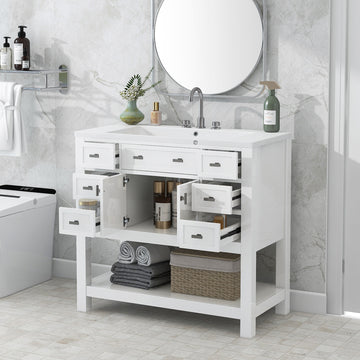 Name: 36'' Bathroom Vanity with Top Sink, Modern Bathroom Storage Cabinet with 2 Soft Closing Doors and 6 Drawers, Single Sink Bathroom Vanity