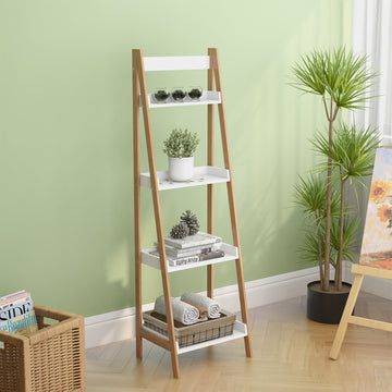 • Sturdy & Durable: This 4-tires ladder shelf is crafted from solid bamboo wood and high-grade E1 Mdf board with Uv painted, which can prevent some types of scratches, such as keys.Each shelf can supports 22 lbs.