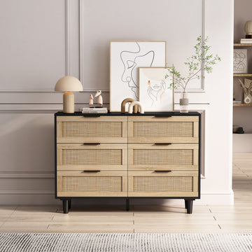 Name: 43.31"6-Drawers Rattan Storage Cabinet Rattan Drawer,for Bedroom,Living Room,Black