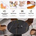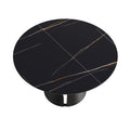 53.15"Modern Artificial Stone Round Black Carbon Steel Base Dining Table Can Accommodate 6 People Black Metal Sintered Stone