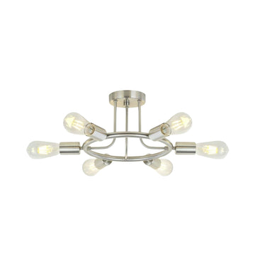 6 Light Modern Sputnik Lights Semi Flush Mount Ceiling Light Brushed Nickel Finished Brushed Nickel Metal