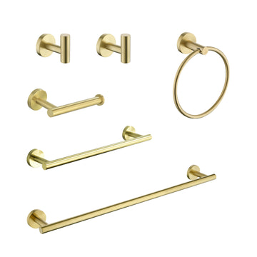 6 Piece Stainless Steel Bathroom Towel Rack Set Wall Mount Brushed Gold Stainless Steel