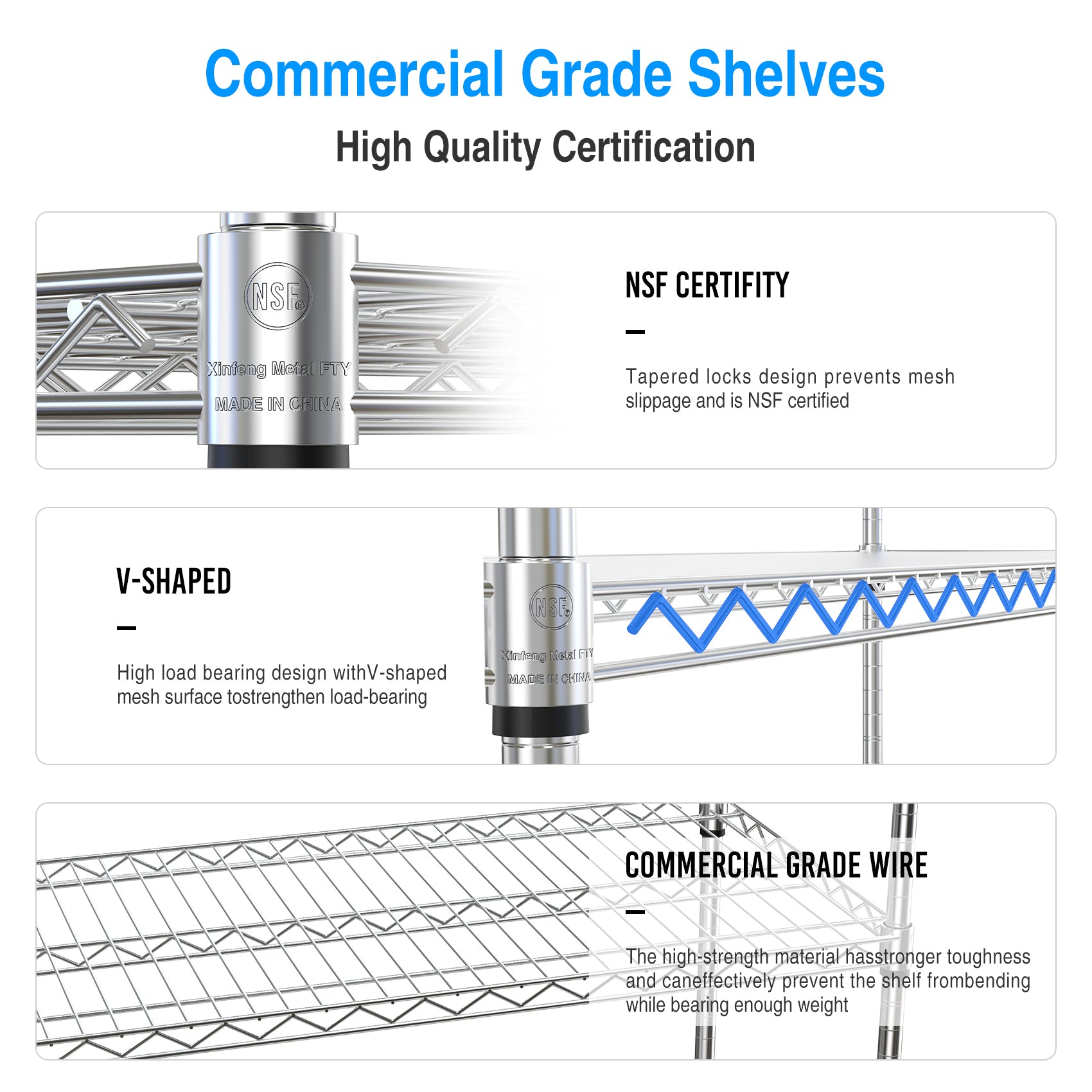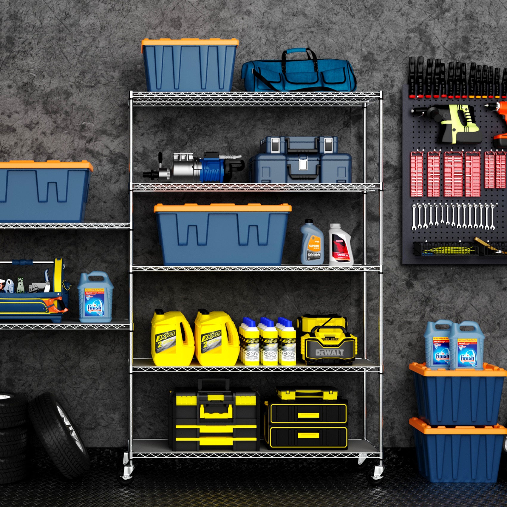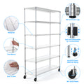 6 Tier Wire Shelving Unit, 6000 Lbs Nsf Height Adjustable Metal Garage Storage Shelves With Wheels, Heavy Duty Storage Wire Rack Metal Shelves Chrome Chrome Iron Plastic