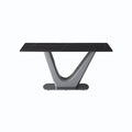 63 "Modern Artificial Stone Black Panel Gray V Shaped Metal Legs Can Accommodate 6 8 People. Black Gray Dining Room Metal Sintered Stone