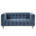 63" Modern Sofa Dutch Fluff Upholstered Sofa With Solid Wood Legs, Buttoned Tufted Backrest,Blue Blue Foam Polyester 2 Seat