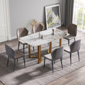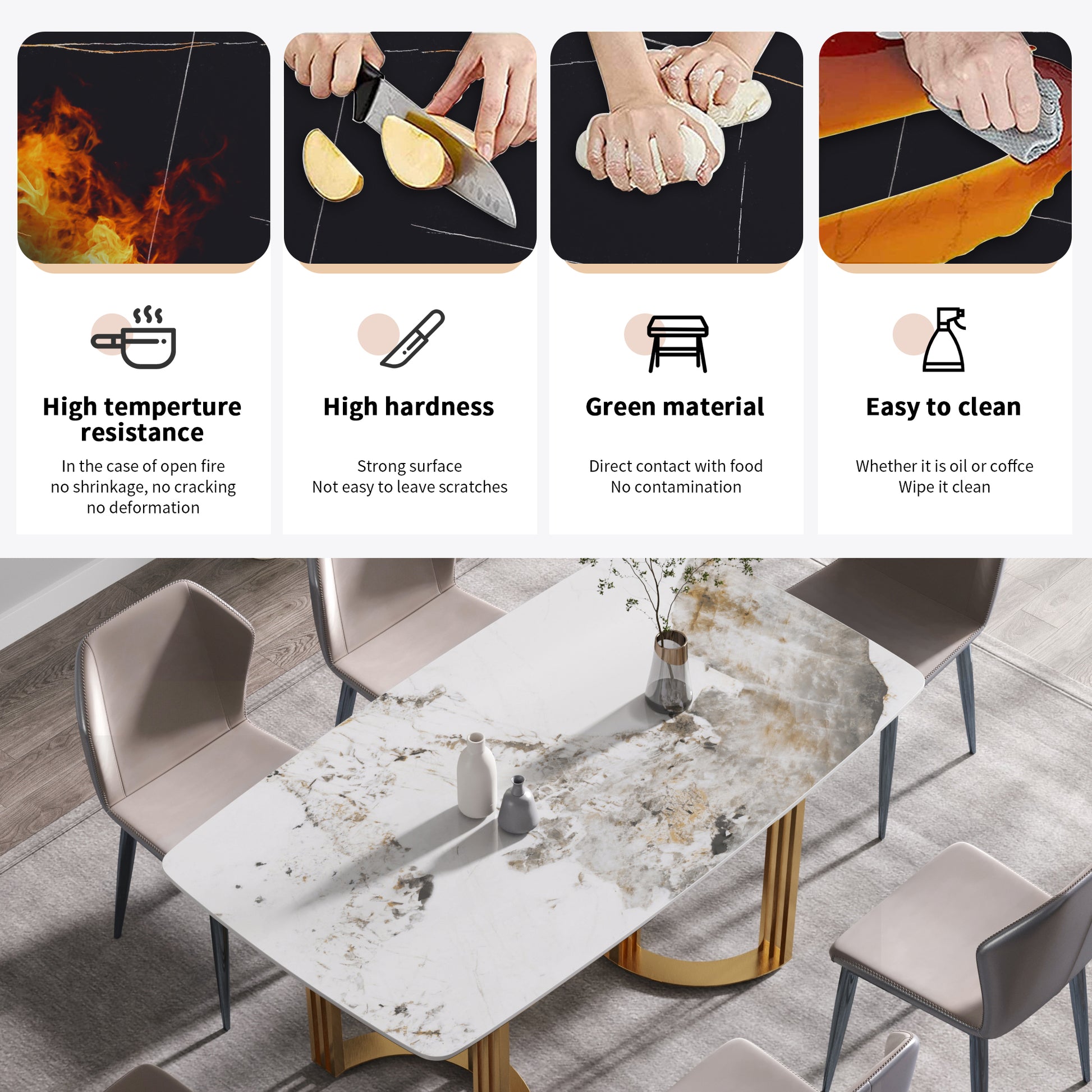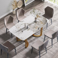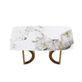 63"Modern Artificial Stone Pandora White Curved Golden Metal Leg Dining Table 6 People Antique White Metal Sintered Stone