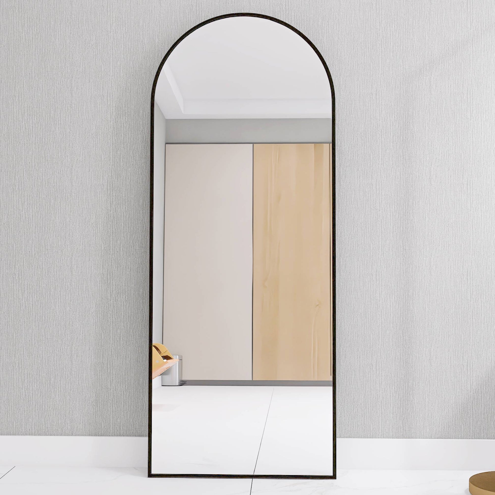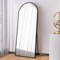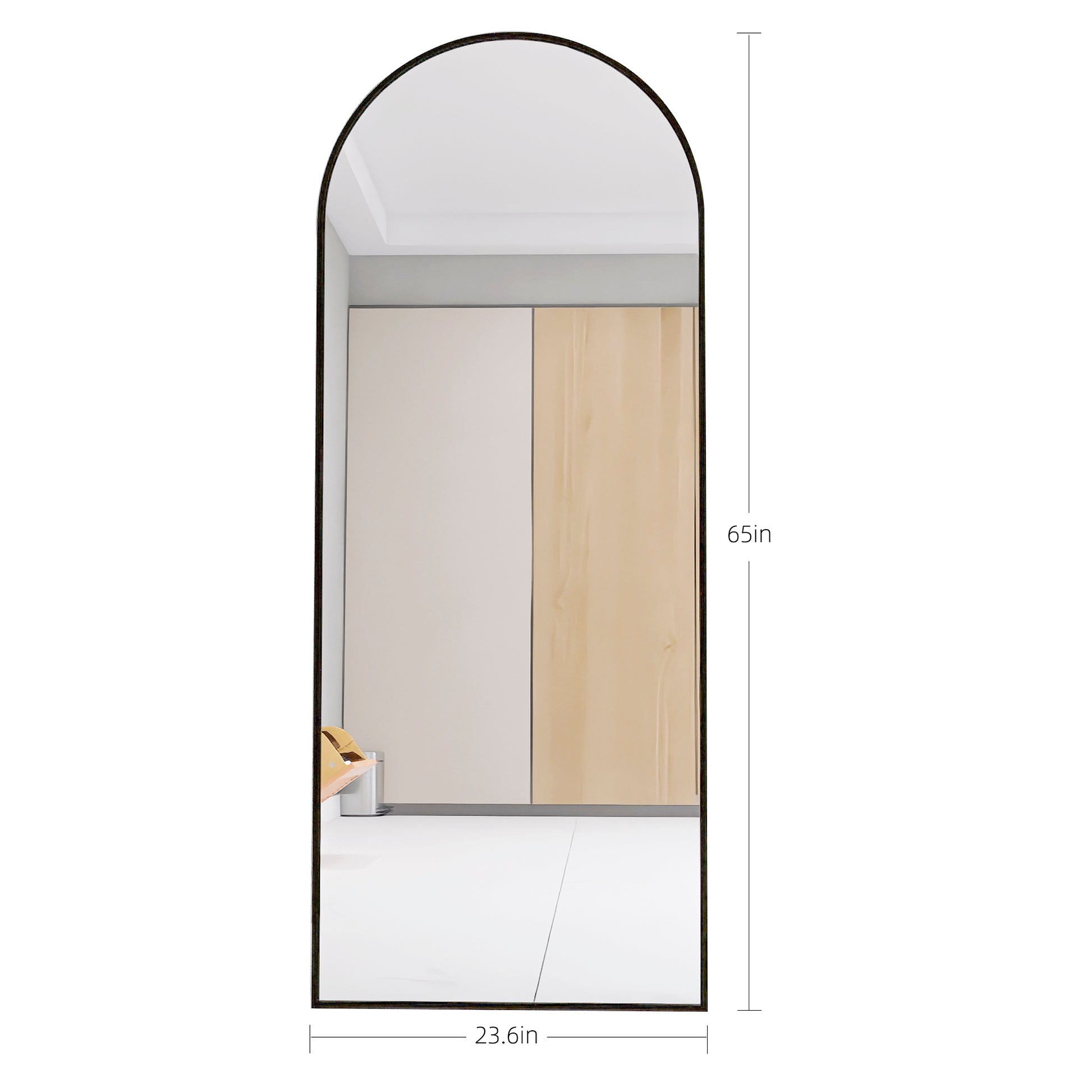 65" Arched Full Length Mirror Floor Dressing Mirror Black Black Glass