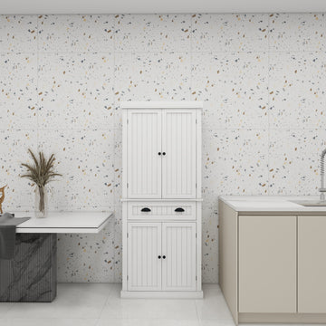 71" Kitchen Pantry Storage Cabinetwith 4 Doors, Drawer, 2 Adjustable Shelves, Freestanding Cupboard For Dining Room Living Room, Laundry White White Mdf