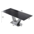 Name: 78.74 "modern artificial stone black panel gray V-shaped metal legs-can accommodate 8 people.