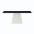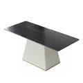 78.74" Modern Artificial Stone Black Straight Side Panel Beige Pu Plywood Table Legs Can Accommodate 8 People. Black Dining Room Plywood Sintered Stone