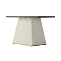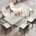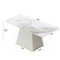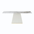 78.74" Modern Artificial Stone Pandora Straight Side Panel Beige Pu Plywood Table Legs Can Accommodate 8 People. White Dining Room Plywood Sintered Stone