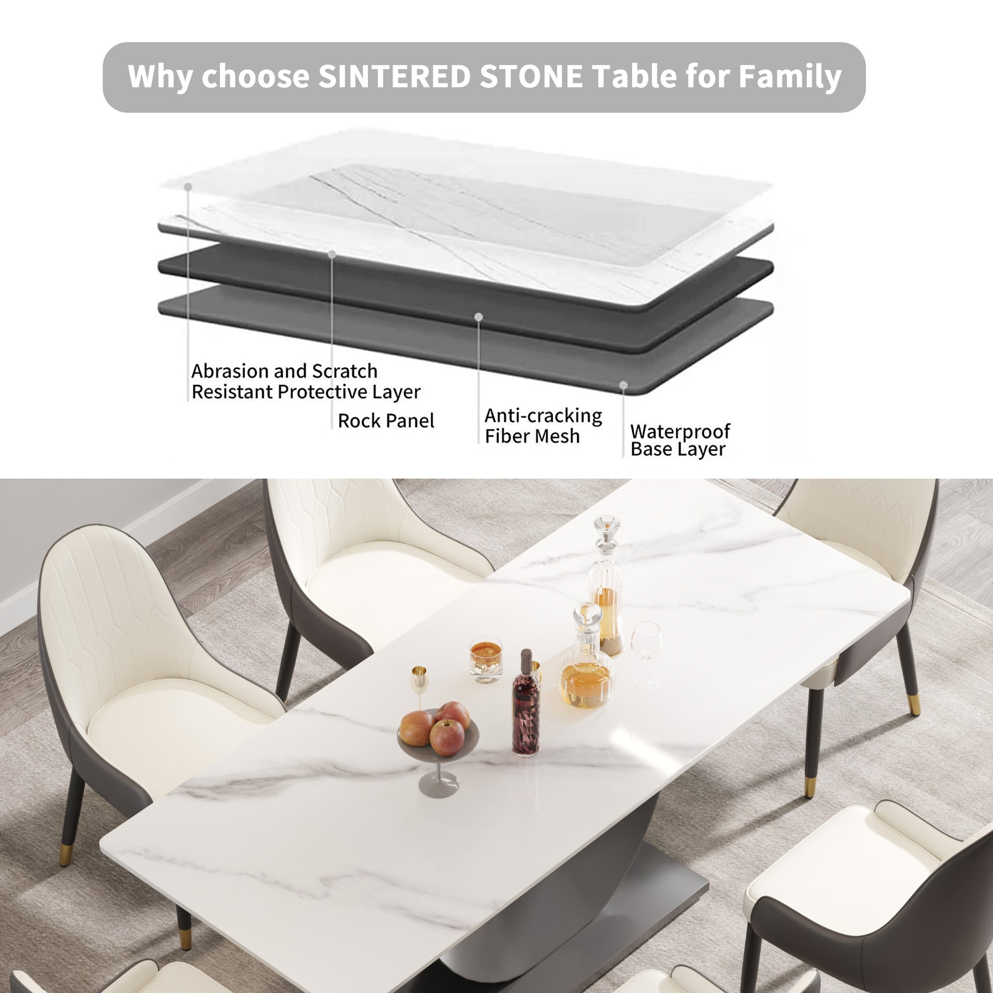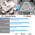 • [Rugged dining table panel & easy to clean] Rugged tabletop is another selling point. The 12mm thick desktop is made of sintered stone, which is heated and pressed into a blade shape, providing you with a desktop that can be used for many years. This material can prevent burns, stains and scratches, and has the characteristics of heat resistance, fire resistance and antifouling.