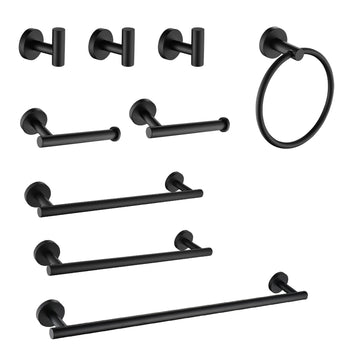 9 Piece Stainless Steel Bathroom Towel Rack Set Wall Mount Matte Black Stainless Steel