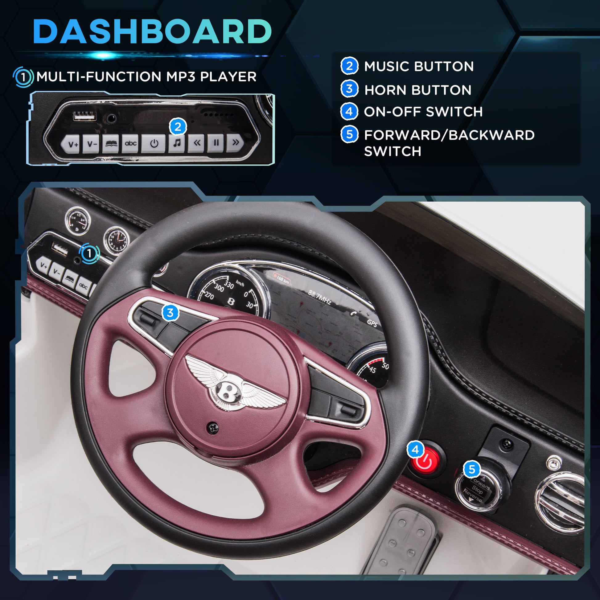 Aosom Bentley Mulsanne 12V Ride On Car, Battery Powered Car With Remote Control, Suspension, Startup Sound, Led Lights, Mp3, Horn, Music, Forward And Backward, 2 Motors, White White Iron Plastic