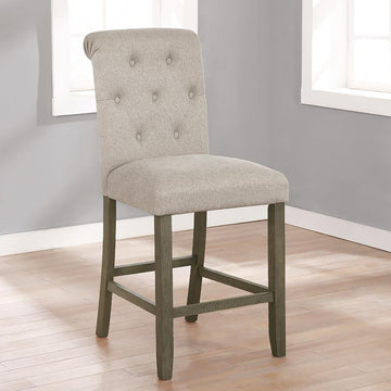 Beige And Rustic Brown Upholstered Counter Height Stools Set Of 2 Solid Beige Brown Dining Room Foam Spot Clean Farmhouse,Rustic Bar Stools Tufted Back Foam Fabric