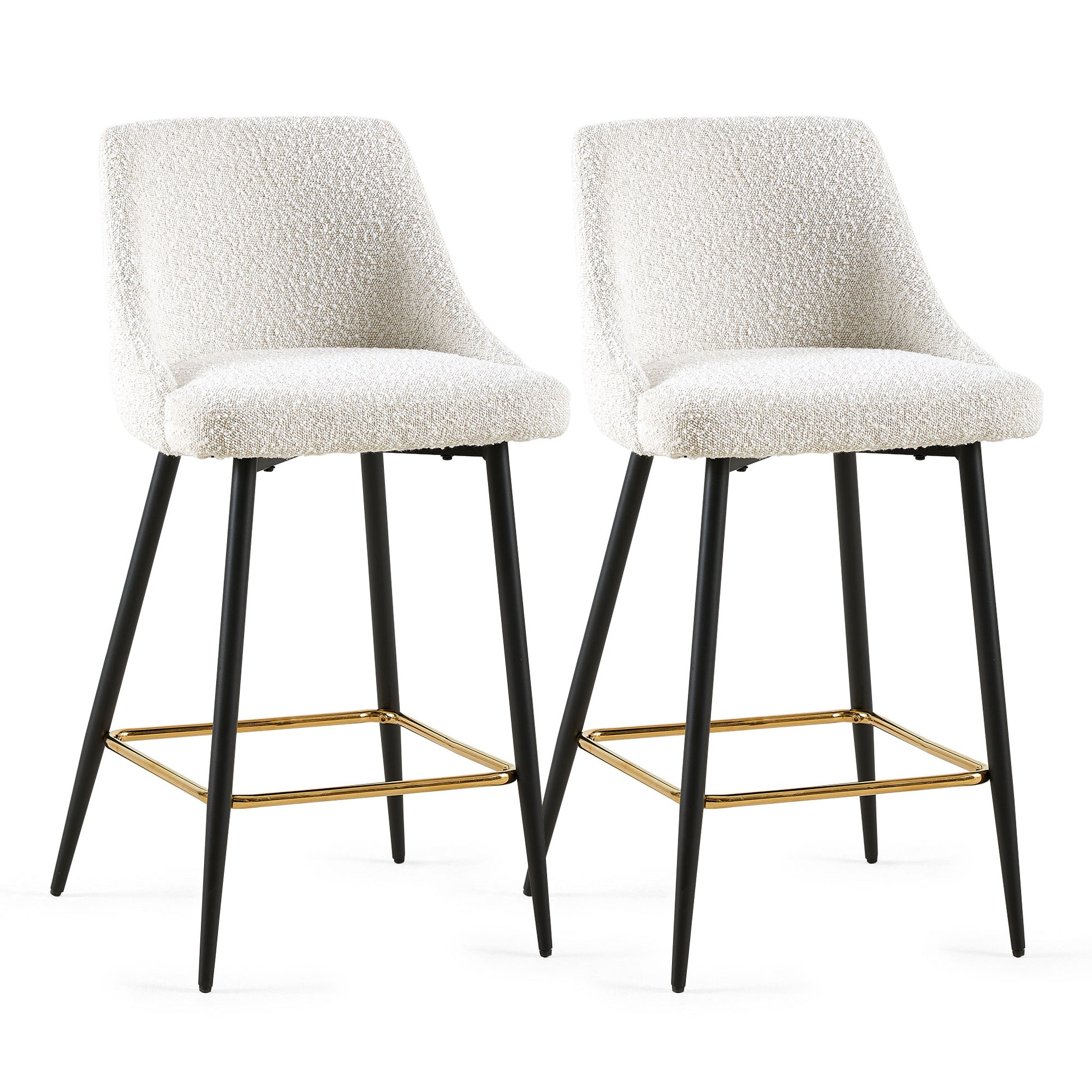 This set of 2 bar stools are great addition around a kitchen island or a bar area.Comfortable,Functional.These stools looks so good,that people can't resist seat on it and joining the conversation.The upholstered bar stool features a cushioned seat for dining comfort.The matte black metal legs are crafted for durability yet add a tone of modernity to this chair.