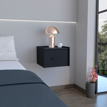 Black Modern Floating Nightstand, Space Saving Design With Convenient Drawer And Black Pull Handle. Black Particle Board Engineered Wood