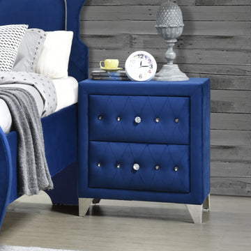 Blue Upholstered 2 Drawer Nightstand Blue 2 Drawers Bedroom Bedside Cabinet Luxury Drawers Velvet