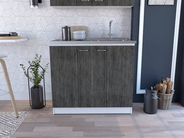 Brookeline Rectangle 2 Door Utility Sink And Cabinet White And Smokey Oak Gray Particle Board