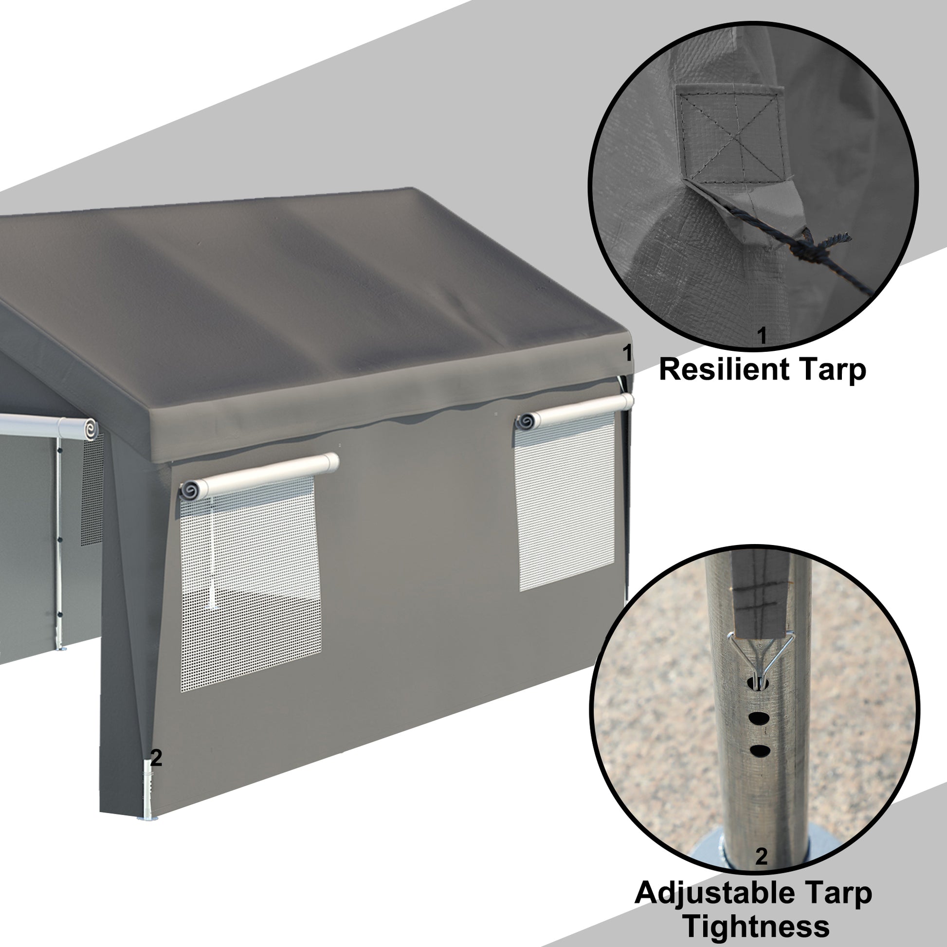 Carport Canopy 10X20 Ft Heavy Duty Boat Car Canopy Garage With Removable Sidewalls And Roll Up Ventilated Windows Grey Metal